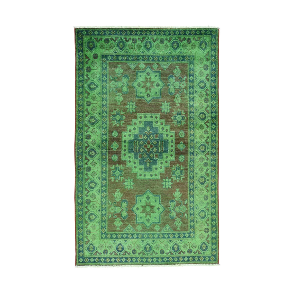 1800 Get A Rug sh31985 4 ft. 2 in. x 6 ft. 10 in. Hand Knotted Cast Overdyed Kazak Pure Wool Rug Green