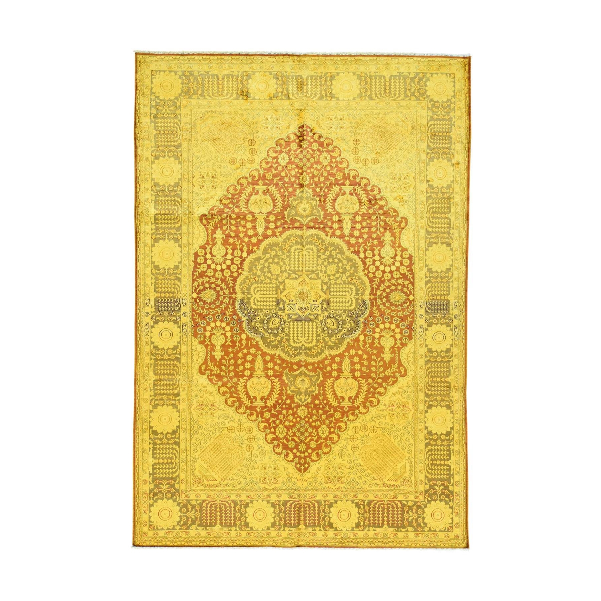 Hand-knotted silked kashan overdyed pure wool yellow oriental rug
