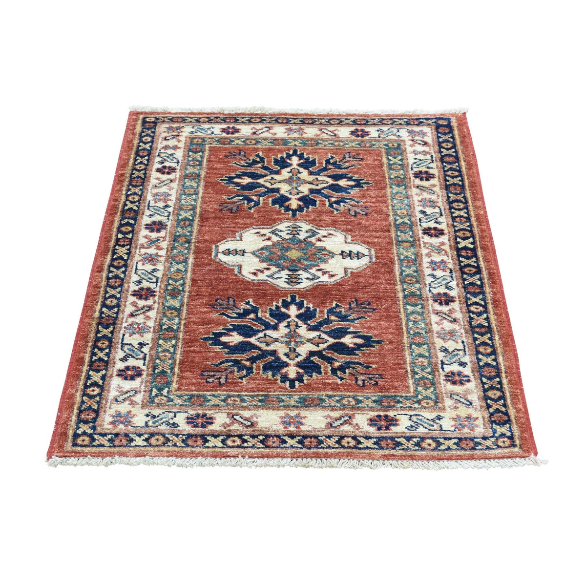 1800 Get A Rug sh32103 2 ft. 3 in. x 2 ft. 10 in. Handmade Super Kazak Pure Wool Tribal Design Red Oriental Rug Red