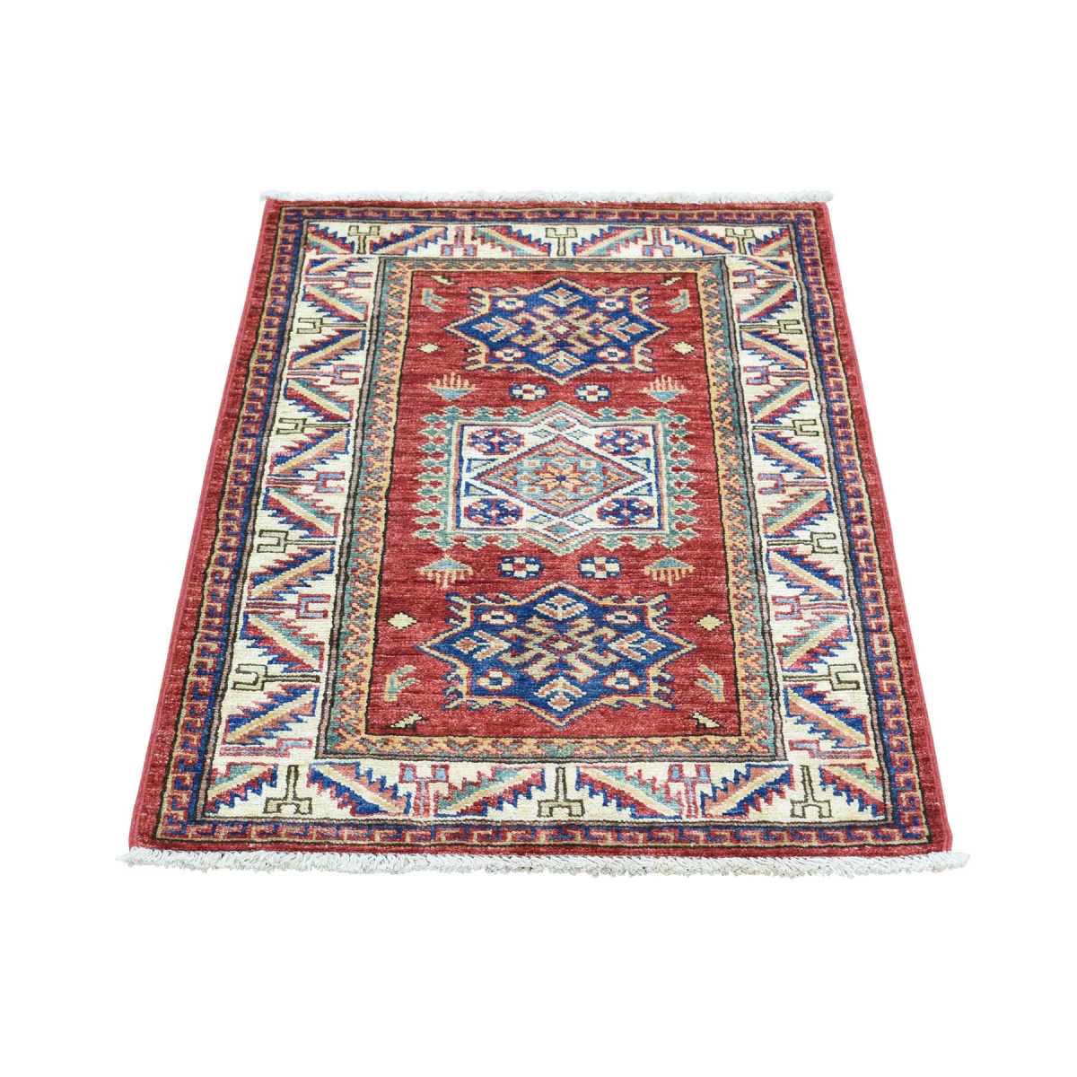 1800 Get A Rug sh32105 2 ft. x 2 ft. 10 in. Handmade Pure Wool Super Kazak Tribal Design Oriental Carpet Red