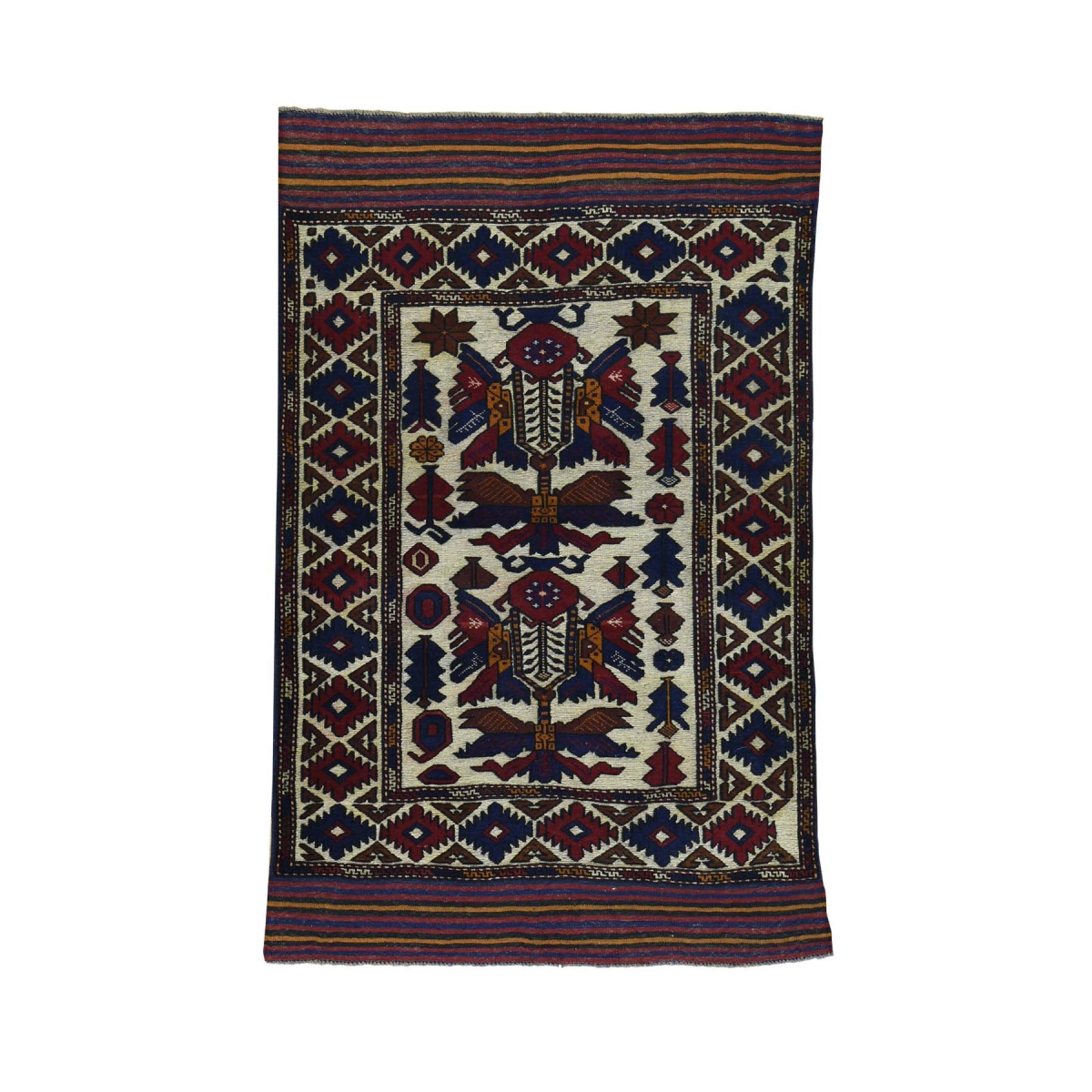 1800 Get A Rug sh32121 4 ft. 1 in. x 6 ft. 3 in. Afghan Baluch with Soumak Weave Hand Knotted Oriental Carpet Ivory