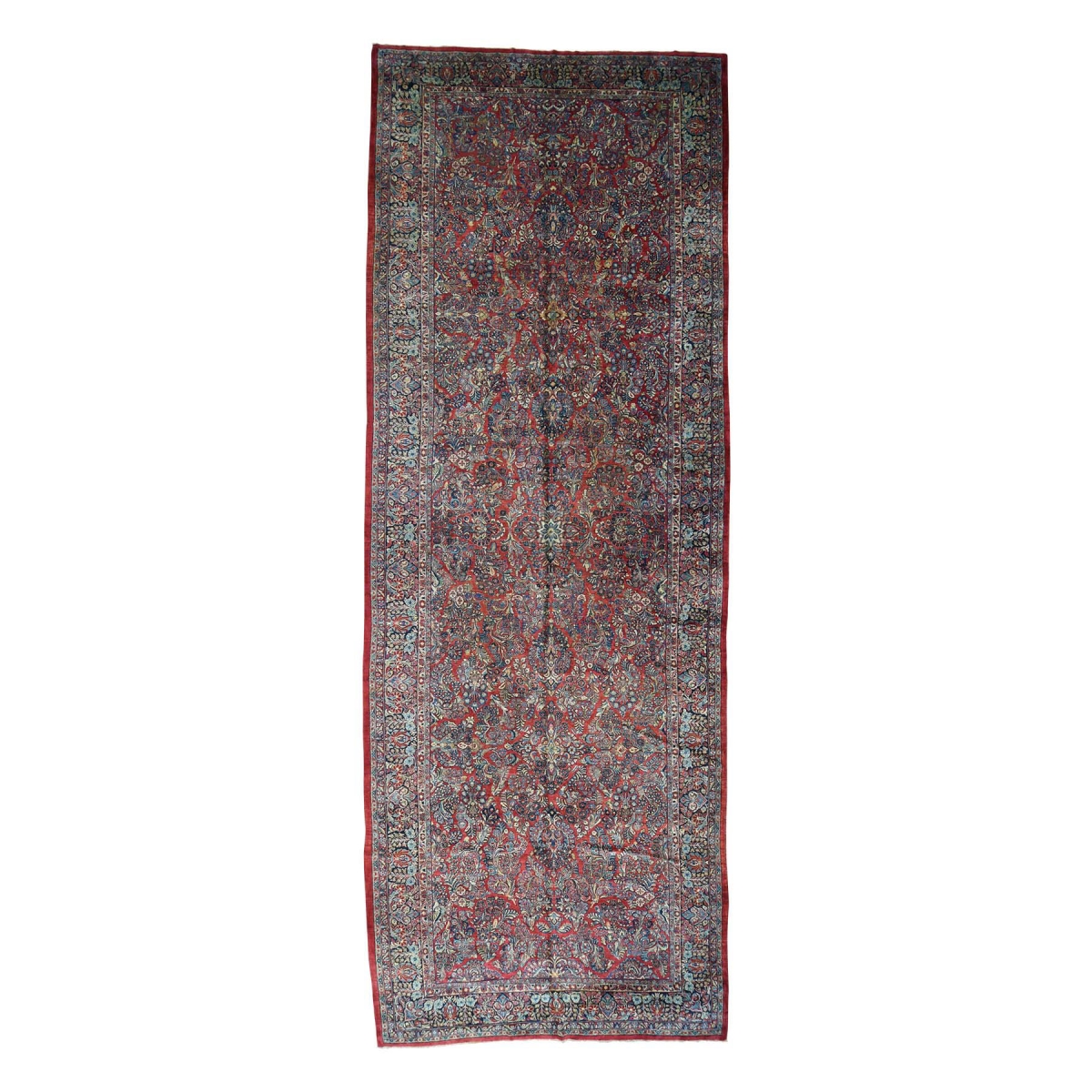 Hand-knotted antique persian sarouk gallery size exc cond rug