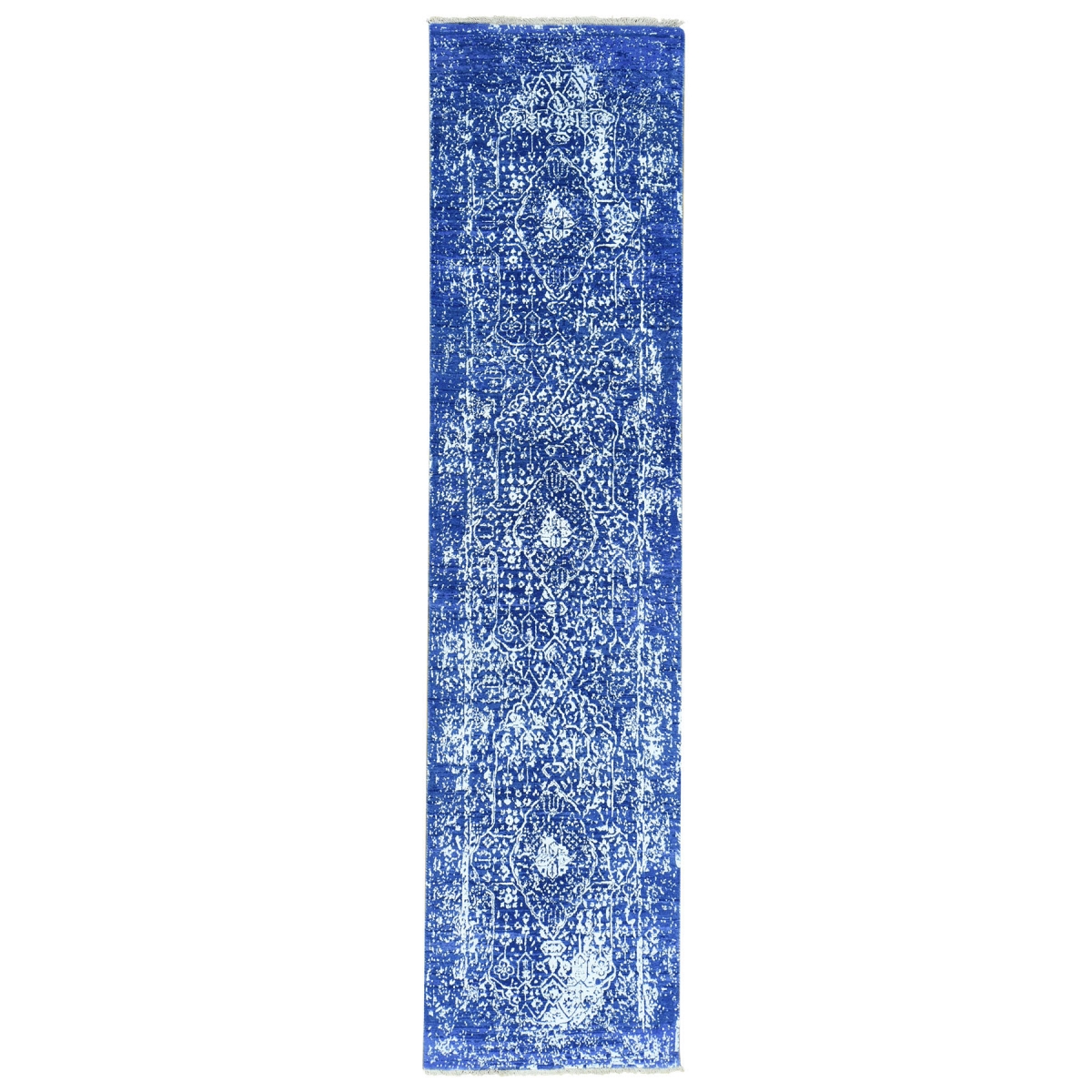 1800 Get A Rug sh32207 2 ft. 5 in. x 9 ft. 8 in. Wool and Silk Handmade Broken Persian Design Runner Rug Blue