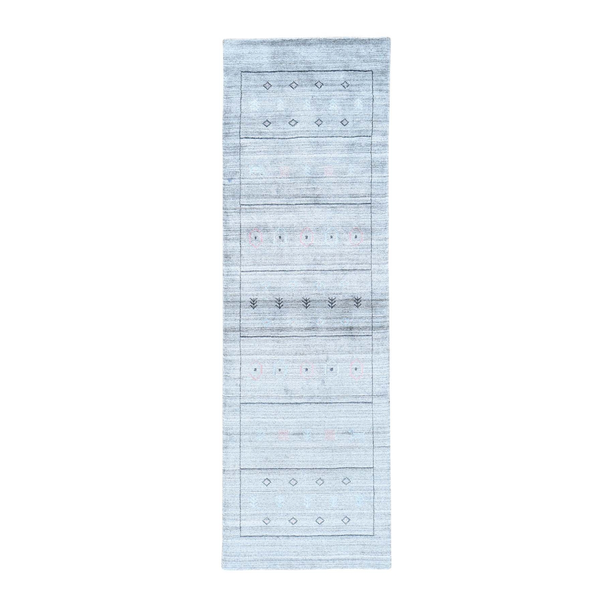 1800 Get A Rug sh32236 2 ft. 8 in. x 8 ft. Hand Loomed Folk Art Pure Wool Lori Buft Gabbeh Runner Rug Grey