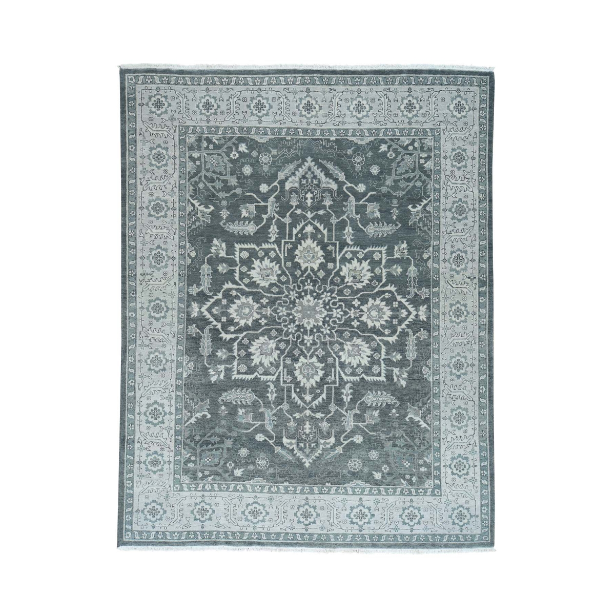 Silver wash serapi heriz hand-knotted pure wool oriental rug