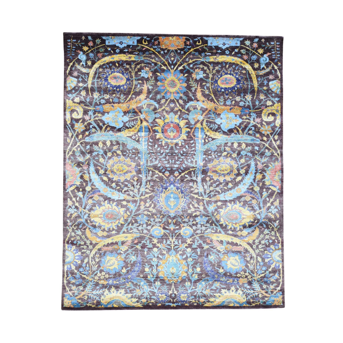 Hand-knotted wool and bamboo silk tabriz sickle leaf design rug