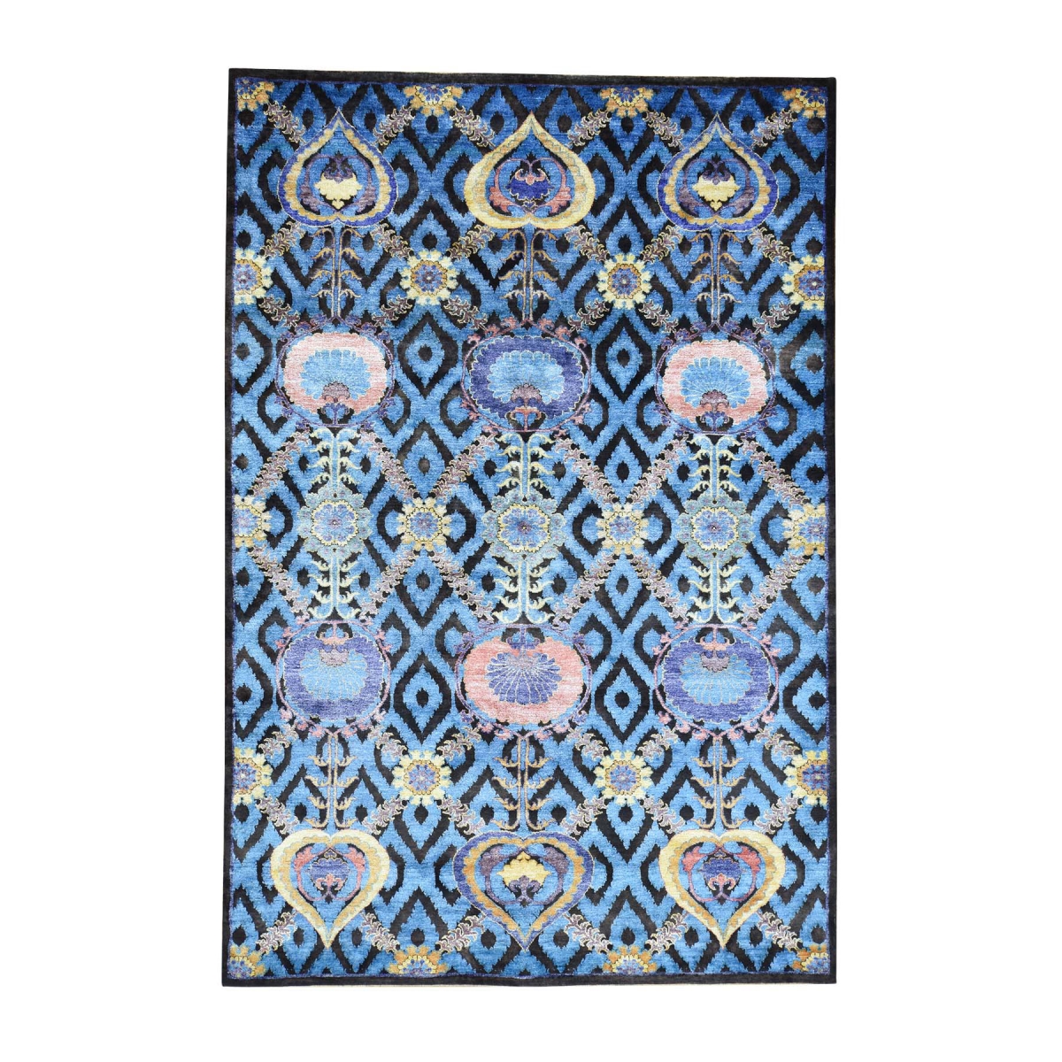 1800 Get A Rug sh32293 6 ft. x 9 ft. Hand Knotted Arts and Crafts Design Wool and Bamboo Silk Carpet Blue