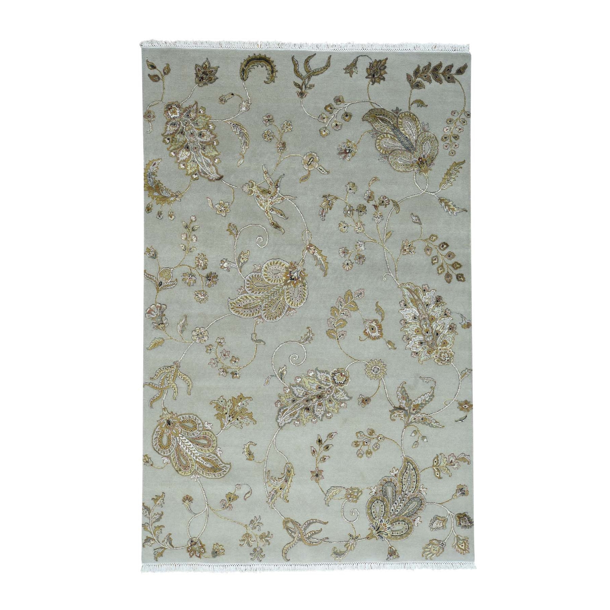 1800 Get A Rug sh32311 5 ft. 10 in. x 9 ft. 1 in. Modern Transitional Open Field Wool and Silk Hand Knotted Rug Beige