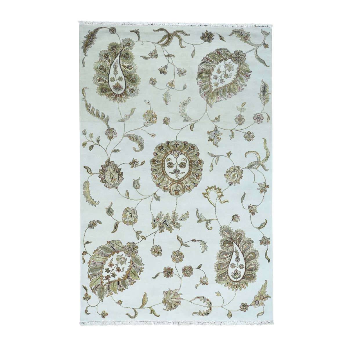 1800 Get A Rug sh32312 6 ft. x 9 ft. 2 in. Modern Transitional No Border Wool and Silk Hand Knotted Rug Ivory