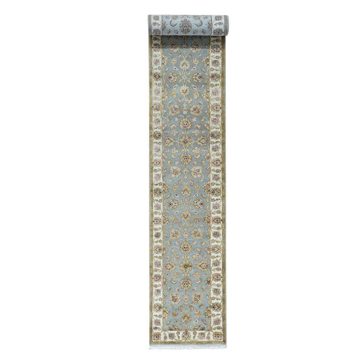 1800 Get A Rug sh32340 2 ft. 6 in. x 17 ft. 6 in. Silver Half Wool Half Silk Rajasthan Runner Carpet Blue - Extra Large