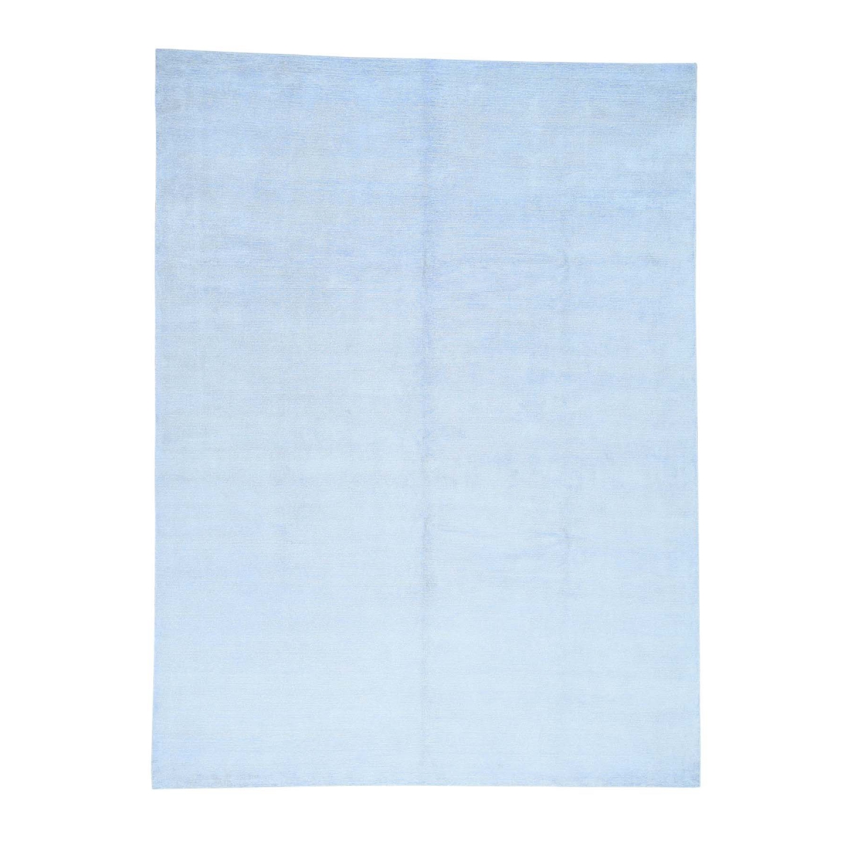 1800 Get A Rug sh32352 9 ft. x 12 ft. Modern Hand Loomed Wool and Silk Plain Design Oriental Rug Blue