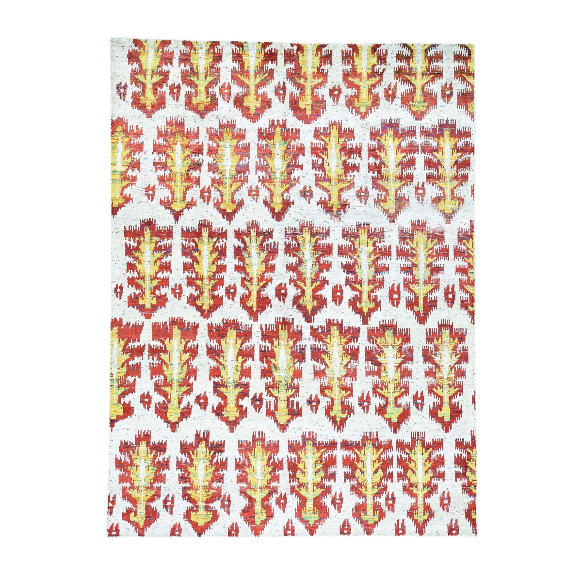 1800 Get A Rug sh32384 9 ft. x 12 ft. 1 in. Hand Knotted Modern Sari Silk Ikat Design Oriental Rug Ivory