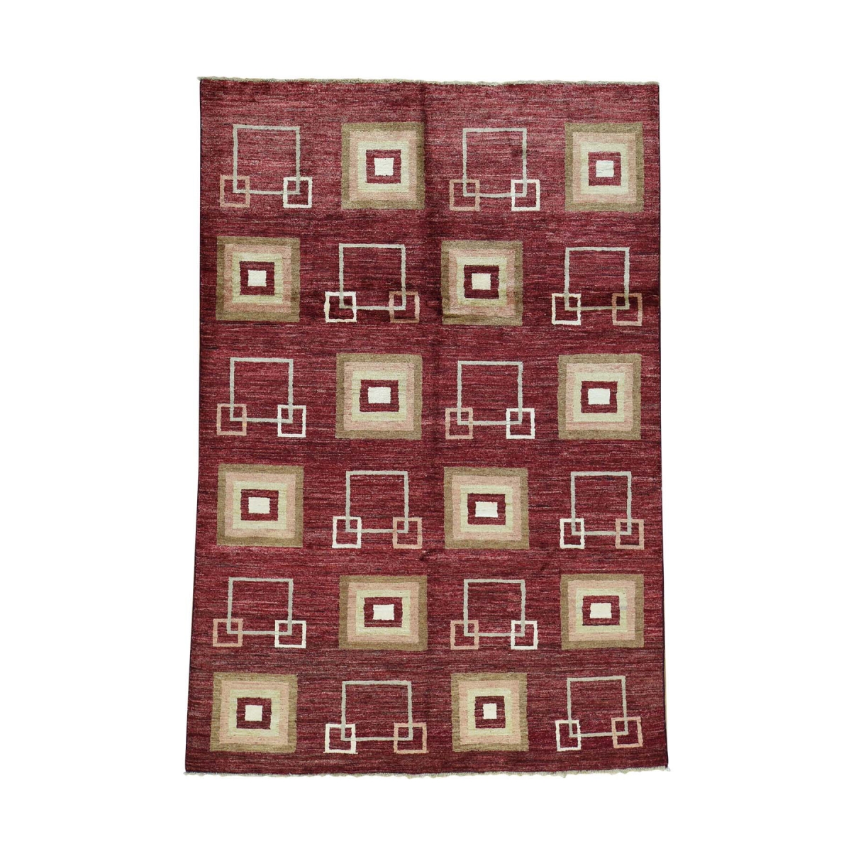 1800 Get A Rug sh32452 5 ft. 4 in. x 8 ft. Modern Gabbeh Hand Knotted Pure Ghazni Wool Rug Burgundy
