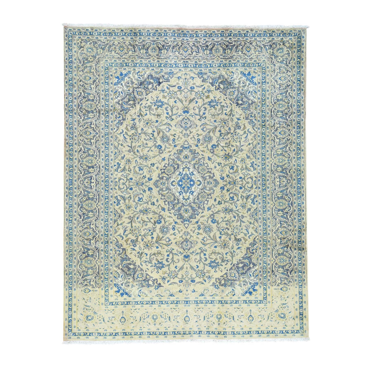 Semi-antique persian kashan hand-knotted milk wash rug