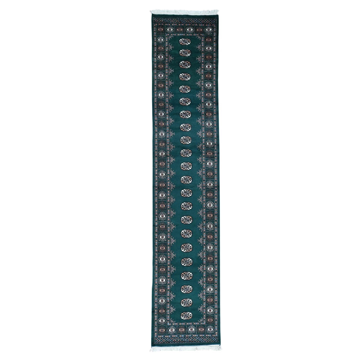 1800 Get A Rug sh32515 2 ft. x 12 ft. Clearance Sale Mori Bokara Hand Knotted Oriental Teal Runner Rug Green