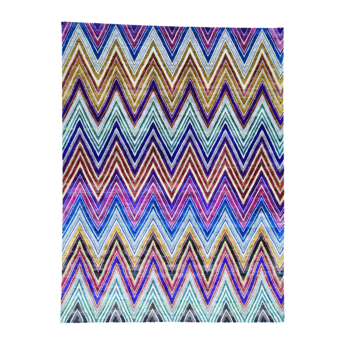1800 Get A Rug sh32692 9 ft. x 12 ft. Sari Silk with Chevron Design Hand Knotted Oriental Rug Multicolor