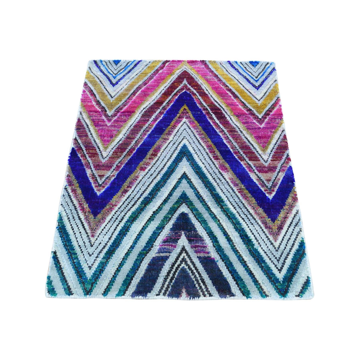 1800 Get A Rug sh32753 2 ft. 1 in. x 3 ft. 2 in. Sari Silk with Chevron Design Hand Knotted Oriental Rug Multicolor