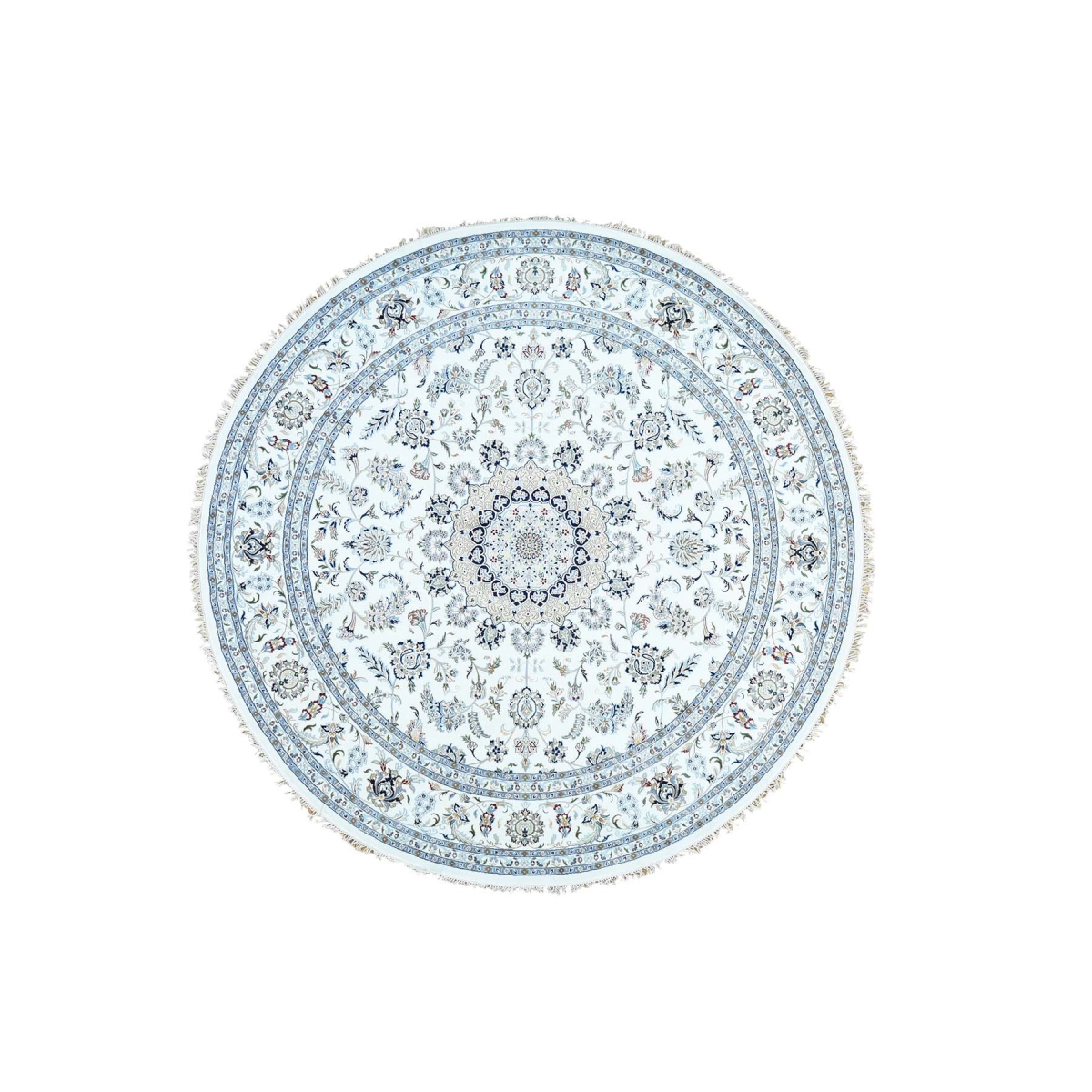 Hand-knotted wool and silk nain 300 kpsi round oriental rug