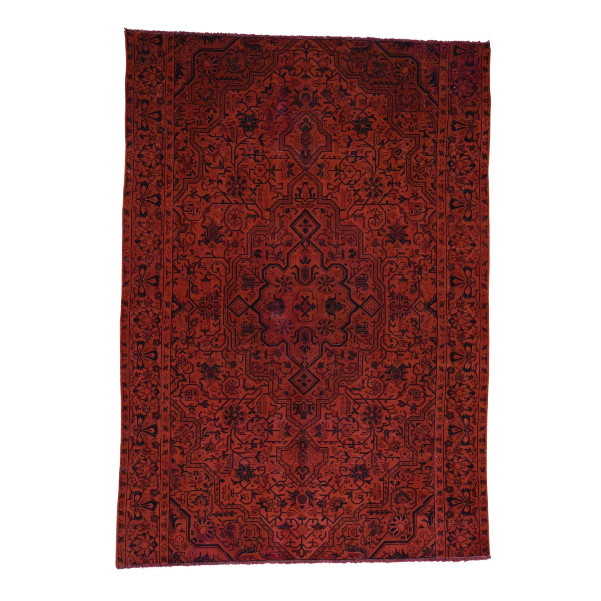 Features- Hand-knotted overdyed tabriz pure wool worn fragment rug