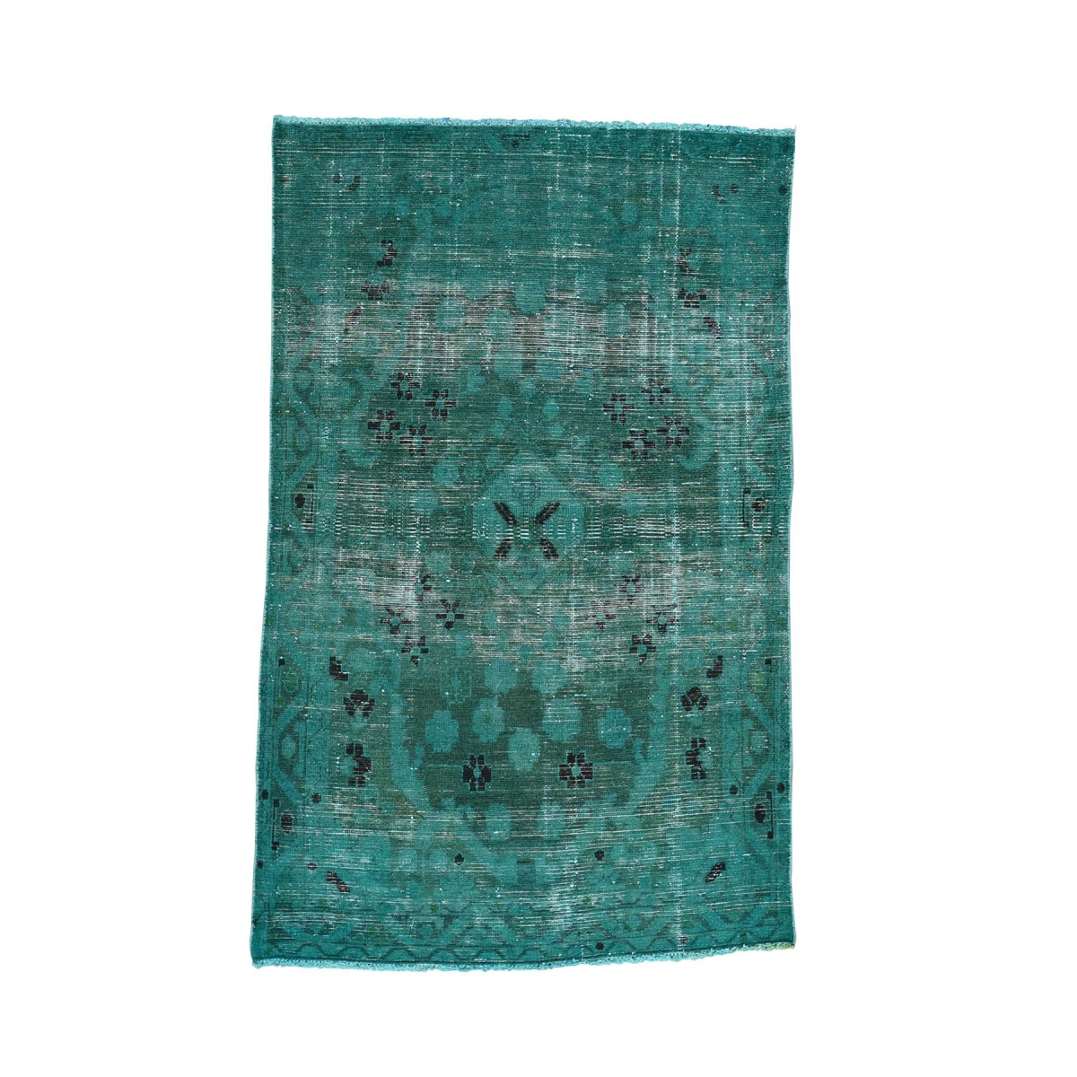 1800 Get A Rug sh32968 4 ft. x 6 ft. Hand Knotted Overdyed Persian Hamadan Pure Wool Worn Oriental Rug Green