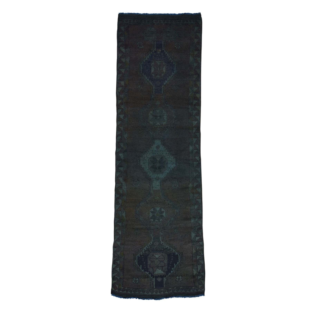 Features- Hand-knotted overdyed persian shiraz worn runner rug