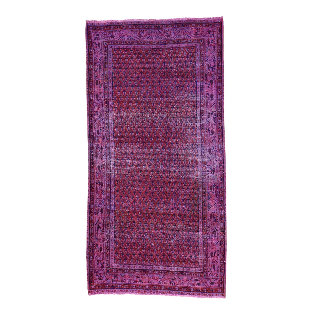 Hand-knotted persian sarouk mir overdyed wide runner rug