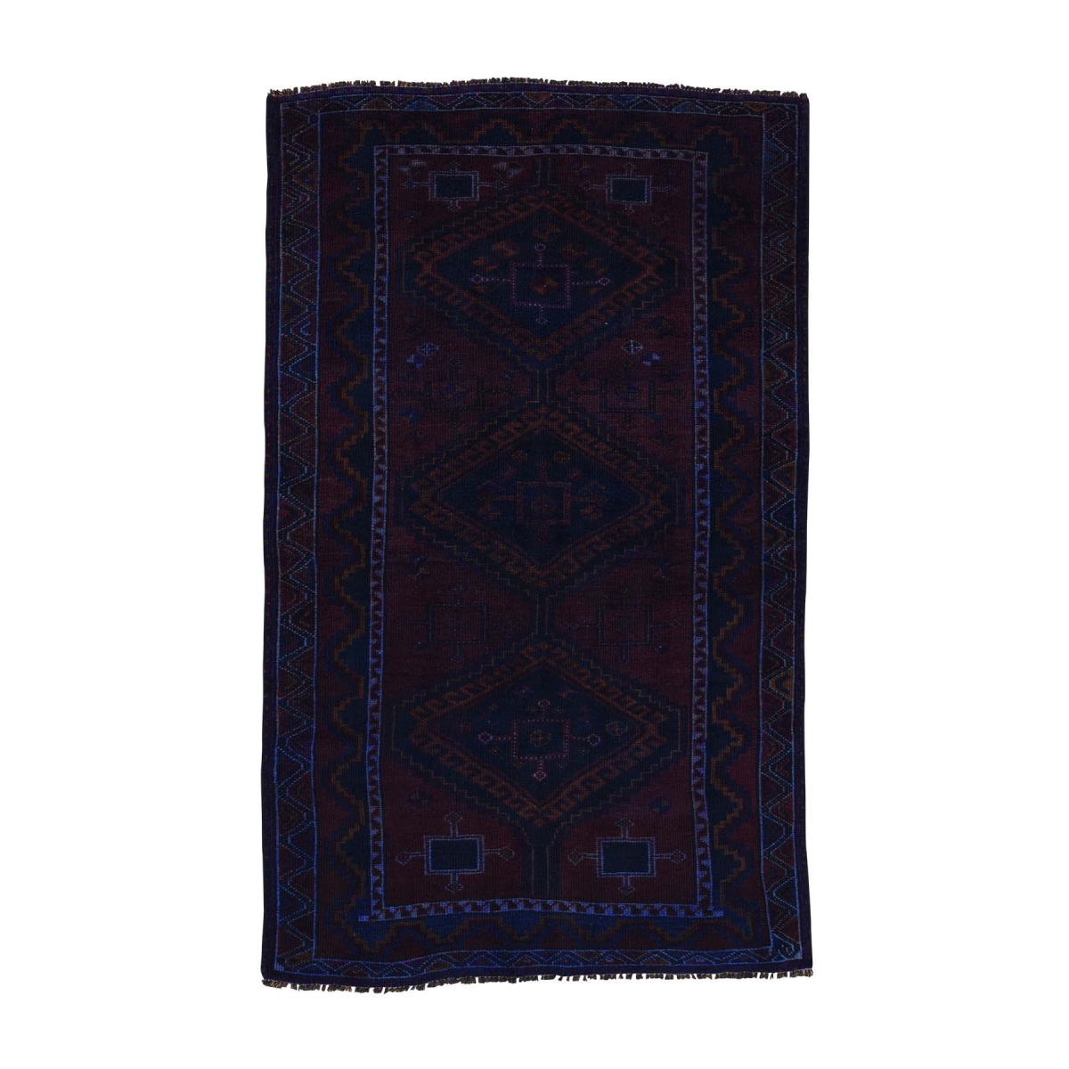 Hand-knotted overdyed persian hamadan pure wool worn rug