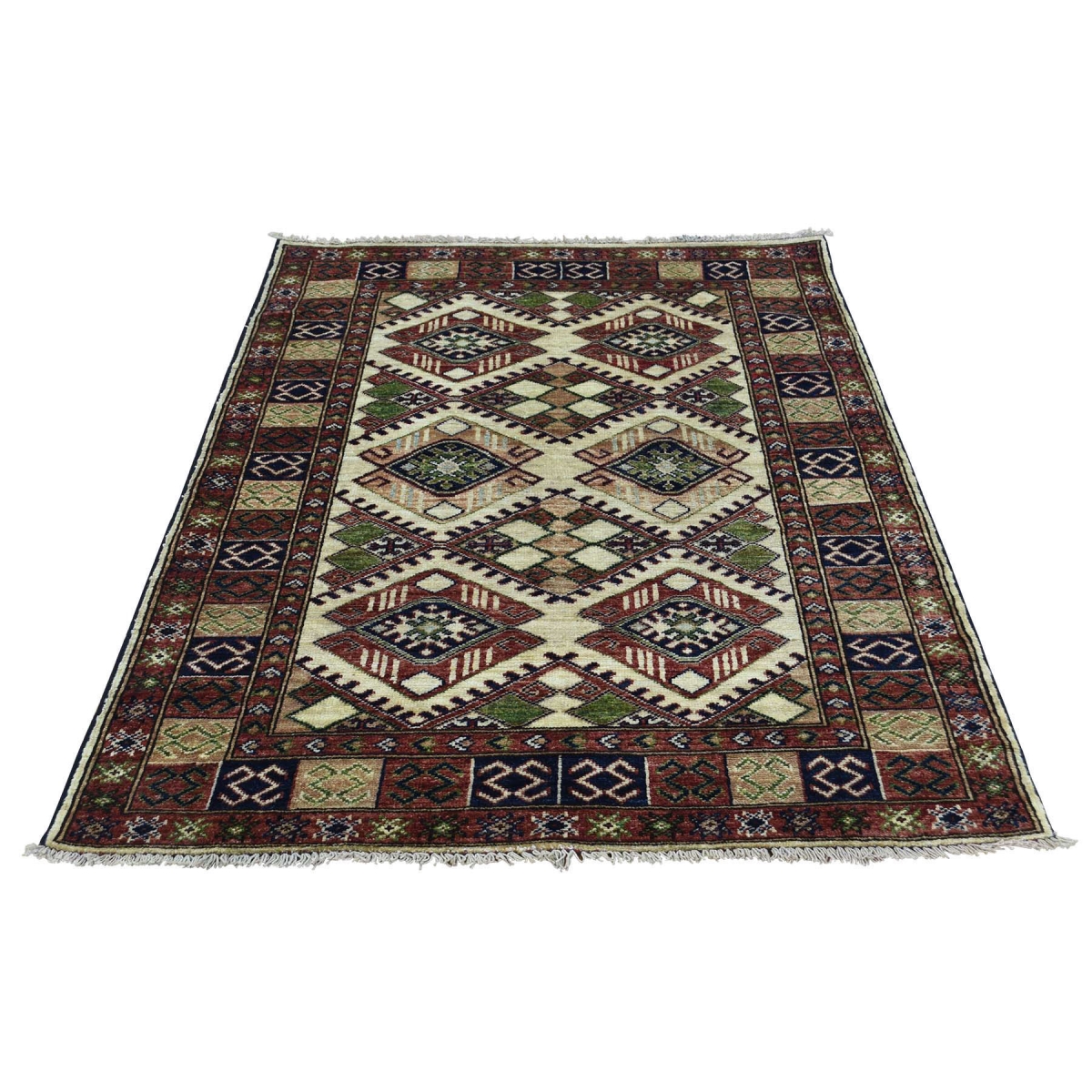 1800 Get A Rug sh33205 3 ft. 4 in. x 5 ft. Hand Knotted Turkoman Ersari 100 Percent Wool Oriental Rug Ivory