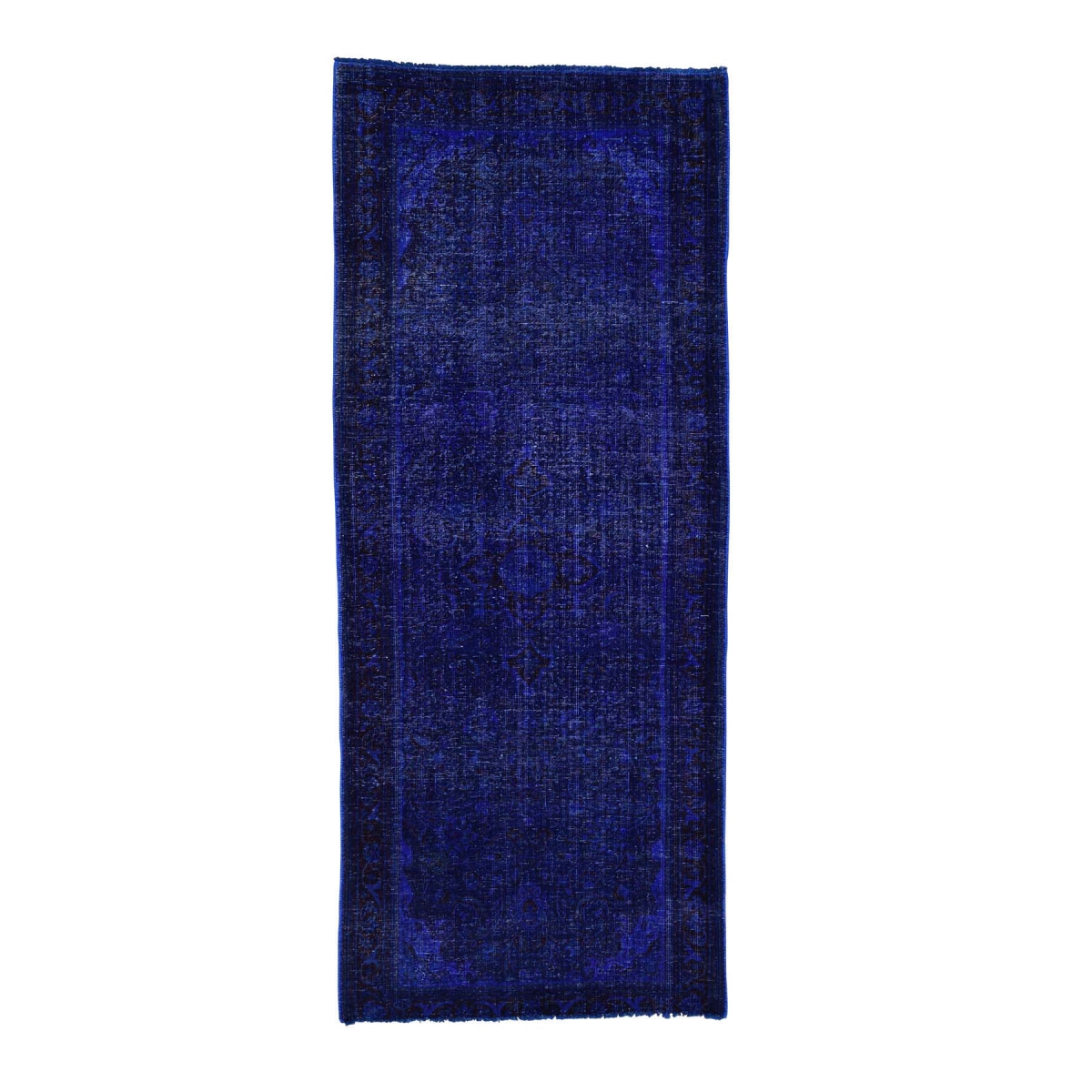 1800 Get A Rug sh33235 3 ft. 4 in. x 8 ft. 2 in. Pure Wool Persian Tabriz Overdyed Handmade Worn Runner Rug Blue