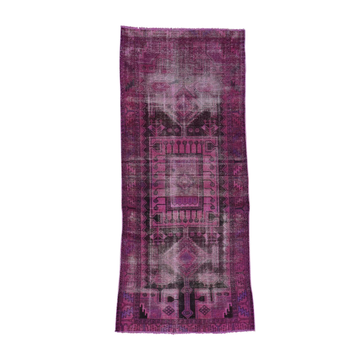 1800 Get A Rug sh33242 4 ft. x 9 ft. 5 in. Pure Wool Overdyed Persian Hamadan Handmade Worn Wide Runner Rug Pink