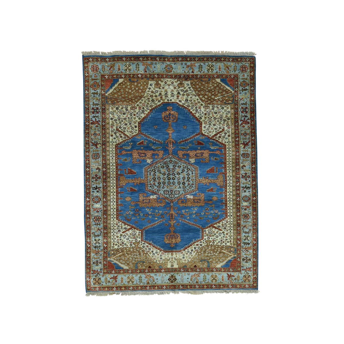 1800 Get A Rug sh33312 5 ft. 2 in. x 7 ft. 1 in. Antiqued Bakshaish Natural Dyes 300 KPSI Hand Knotted Rug Blue
