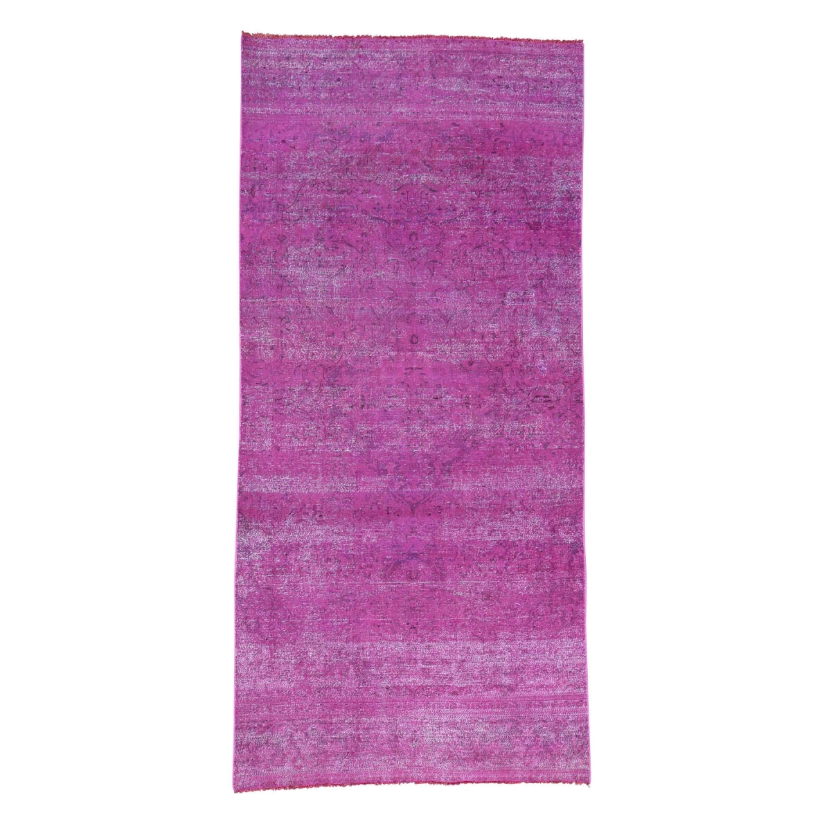 Hand-knotted overdyed worn persian tabriz wide runner rug