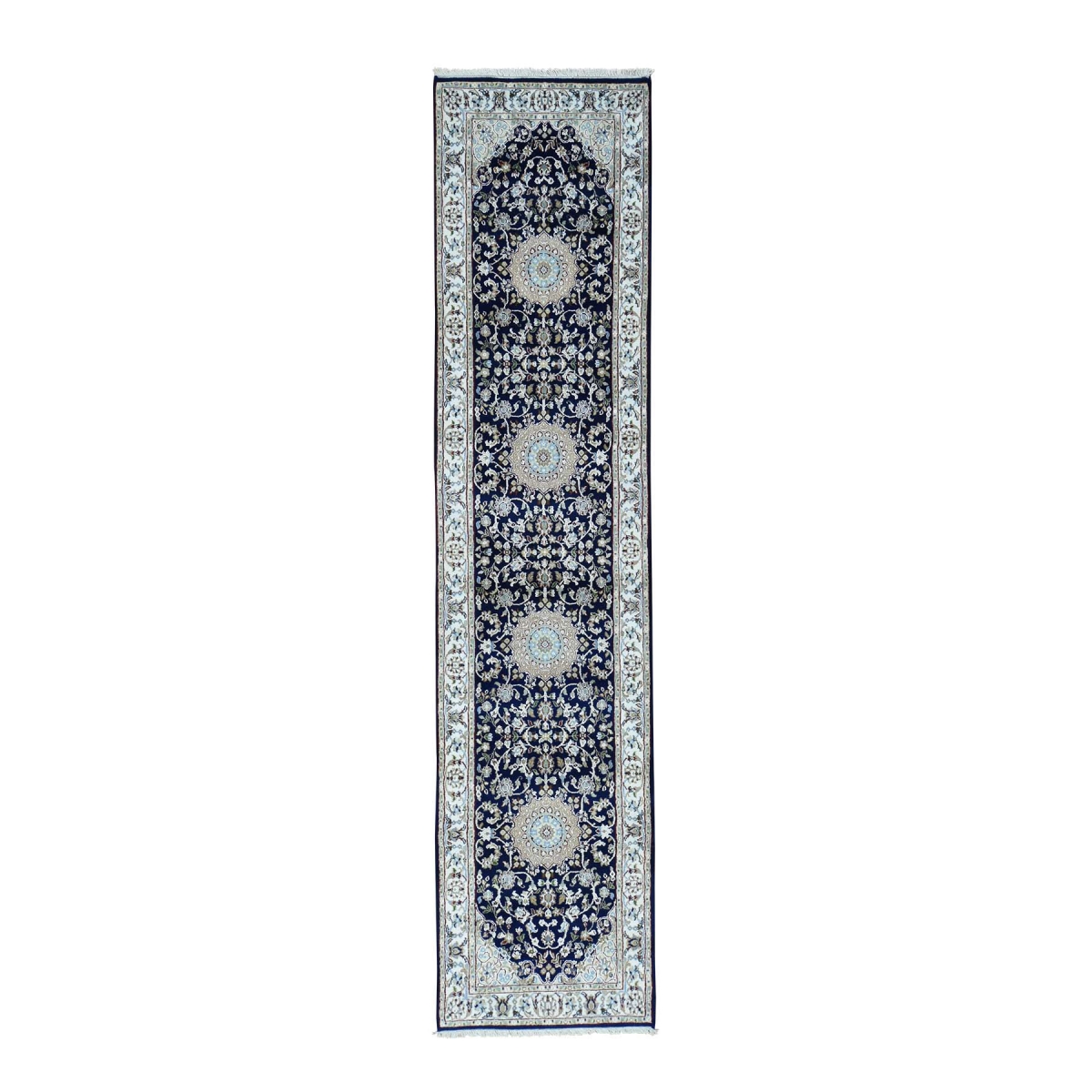 Hand-knotted wool and silk 250 kpsi nain oriental runner rug
