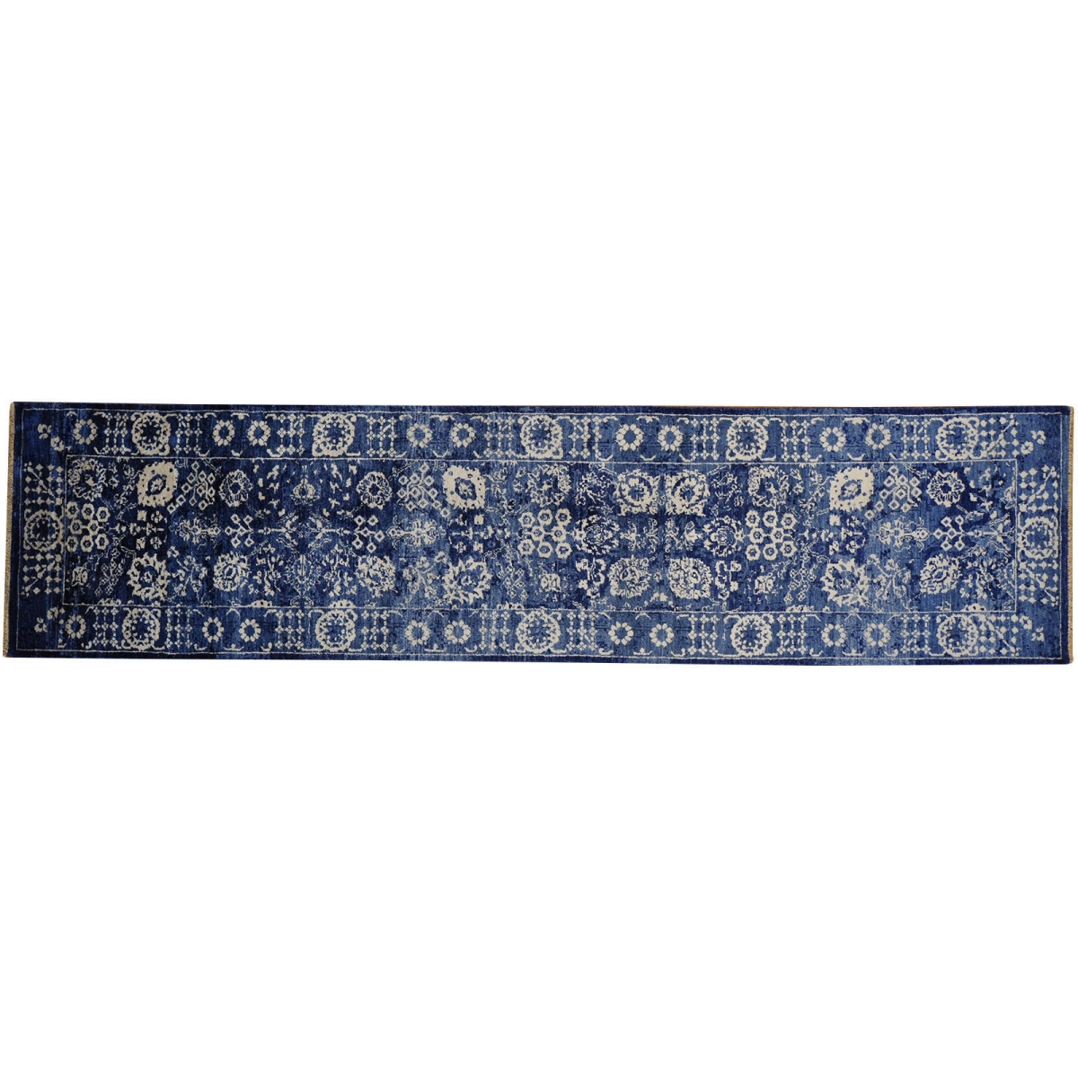 1800 Get A Rug sh33355 2 ft. 6 in. x 9 ft. 11 in. Wool and Bamboo Silk Tone on Tone Tabriz Handmade Runner Rug Blue