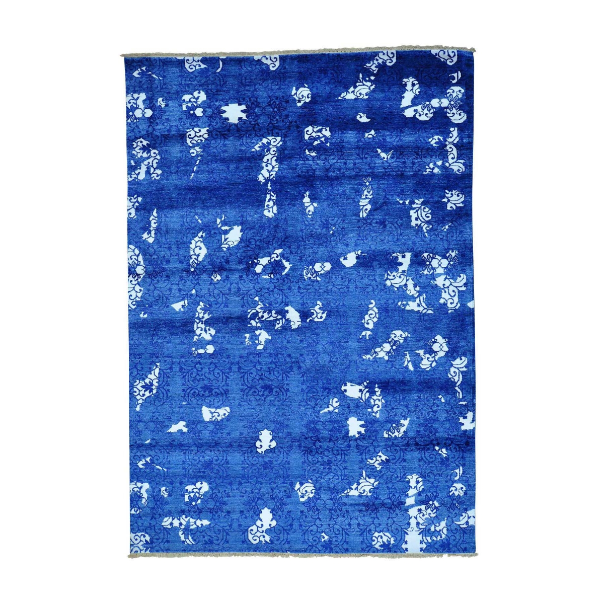 1800 Get A Rug sh33397 5 ft. x 7 ft. Modern Tone on Tone Bamboo Silk Hand Knotted Oriental Rug Blue