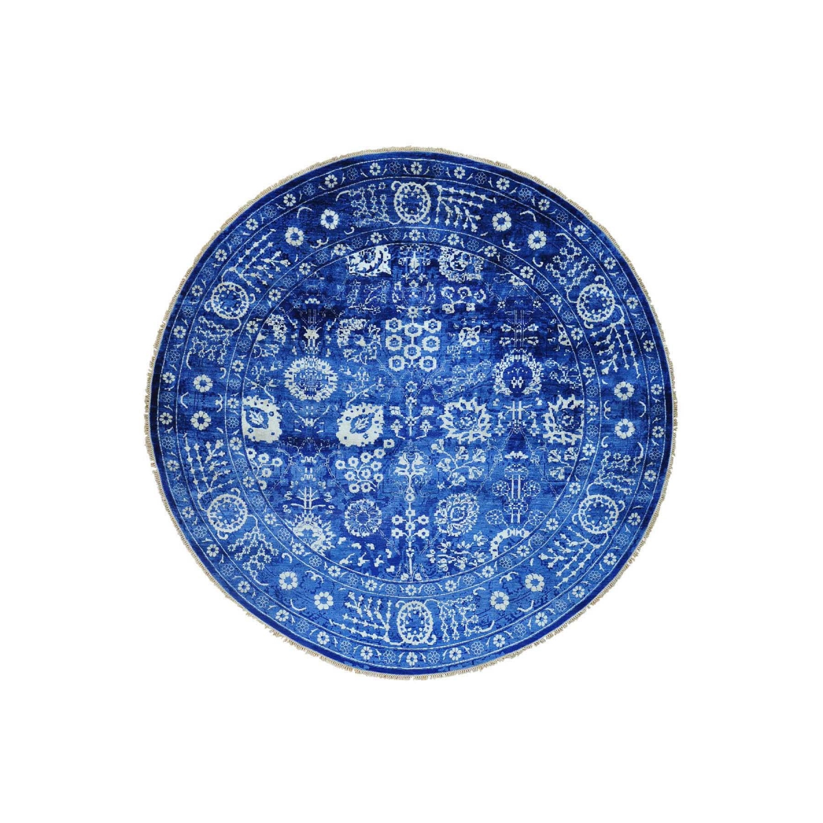 1800 Get A Rug sh33398 12 ft. 1 in. x 12 ft. 5 in. Wool and Bamboo Silk Tone on Tone Tabriz Round Handmade Rug Blue