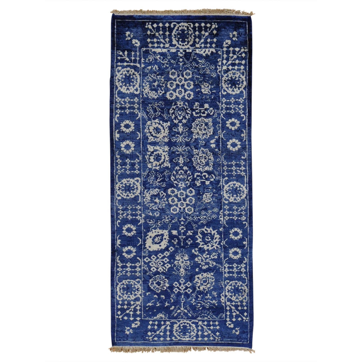 1800 Get A Rug sh33403 2 ft. 5 in. x 6 ft. 1 in. Hand Knotted Wool and Bamboo Silk Tabriz Oriental Runner Rug Blue