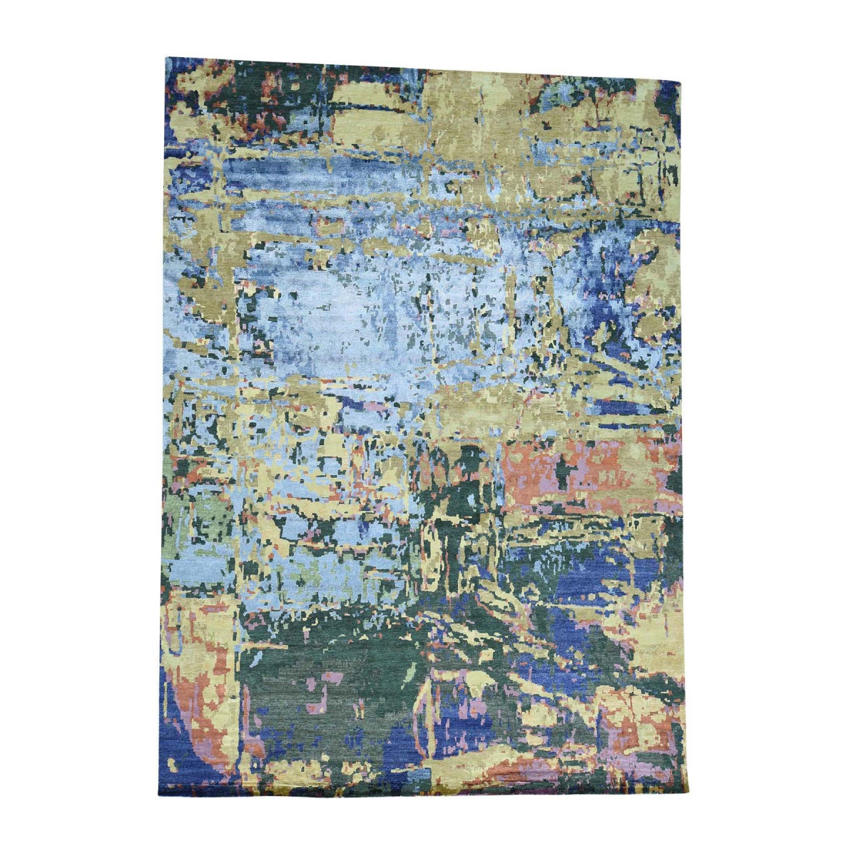 1800 Get A Rug sh33414 10 ft. x 13 ft. 10 in. Wool and Bamboo Silk Handmade Abstract Design Oriental Rug Multicolor