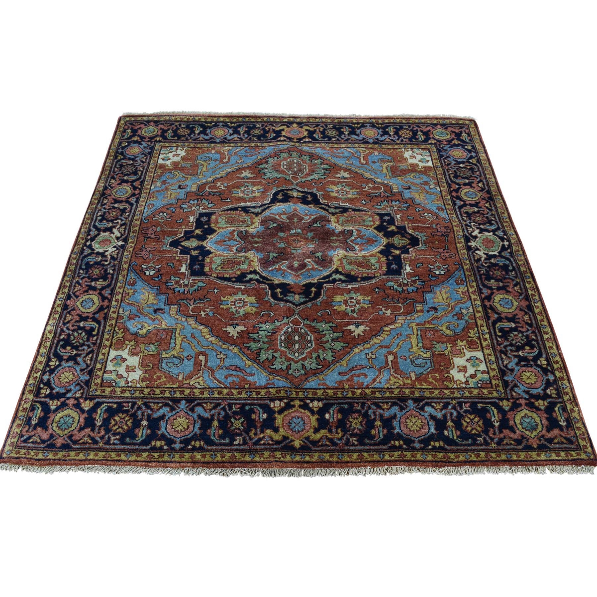Hand-knotted pure wool antiqued heriz recreation square rug