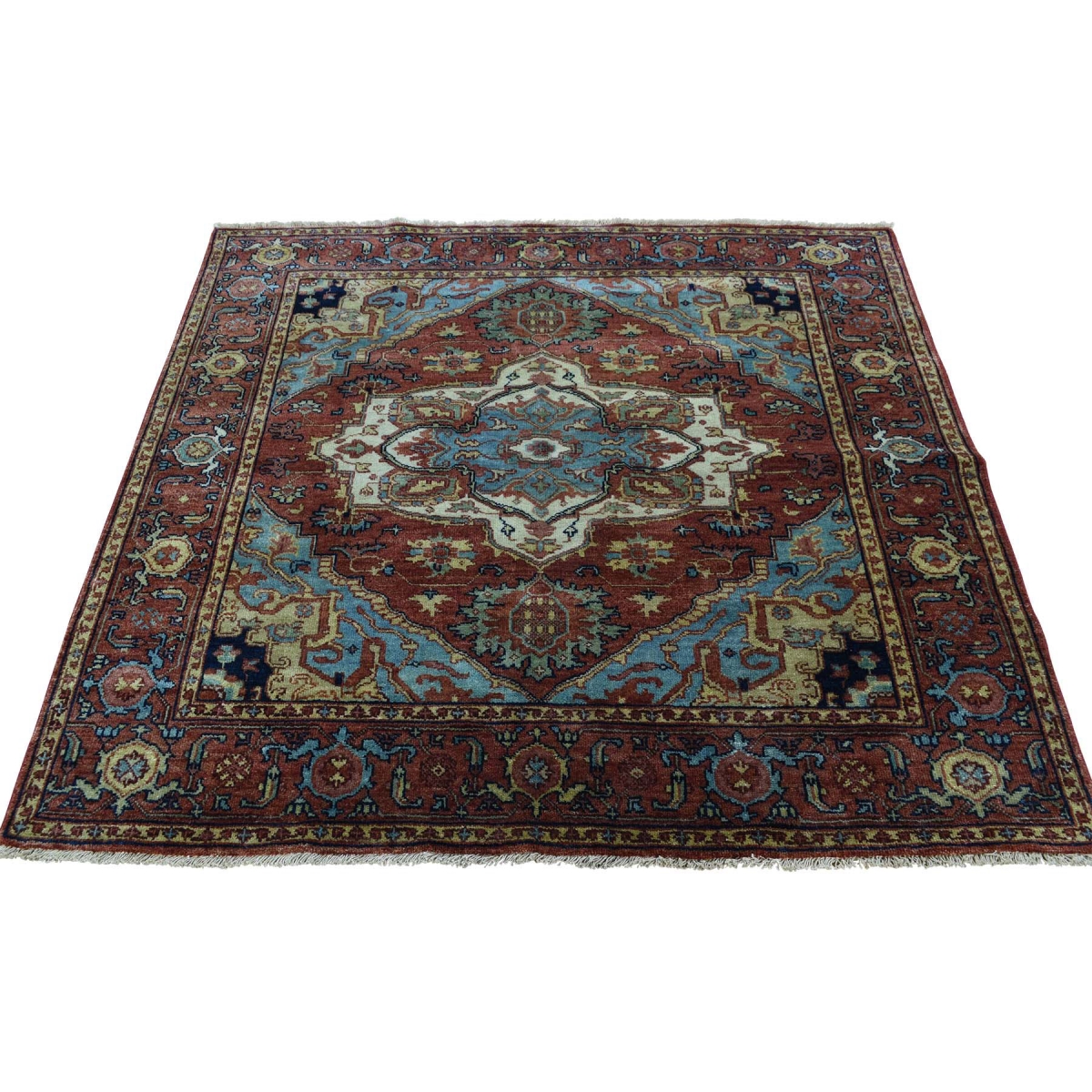 Handmade pure wool antiqued heriz recreation square rug