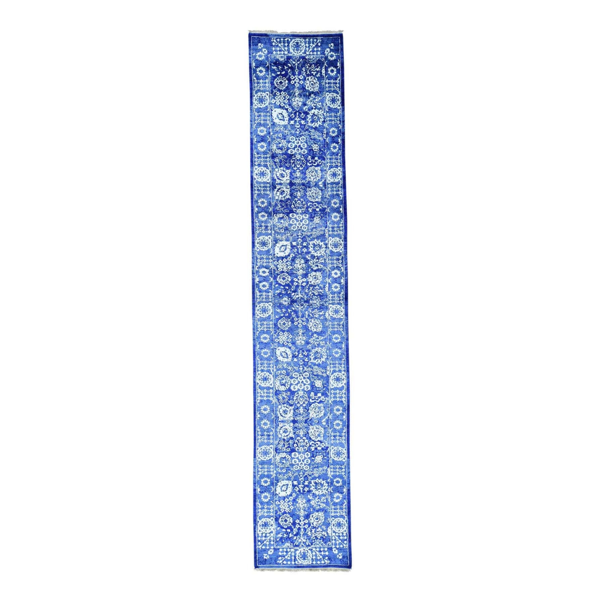 1800 Get A Rug sh33453 2 ft. 6 in. x 19 ft. Tone on Tone Tabriz Wool and Bamboo Silk Handmade Runner Rug Blue - Extra Large