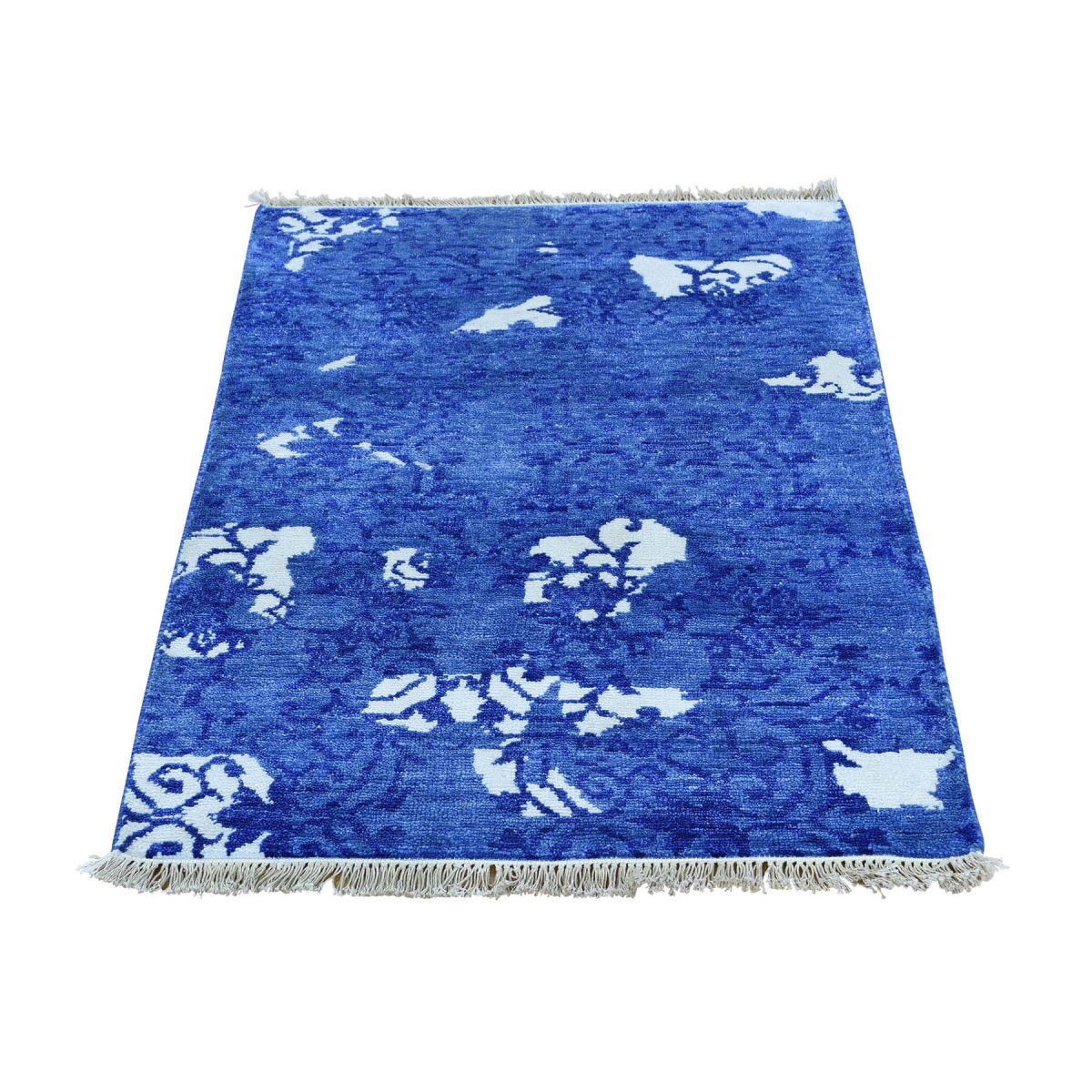 1800 Get A Rug sh33462 2 ft. 2 in. x 3 ft. 1 in. Modern Tone on Tone Bamboo Silk Hand Knotted Oriental Rug Blue