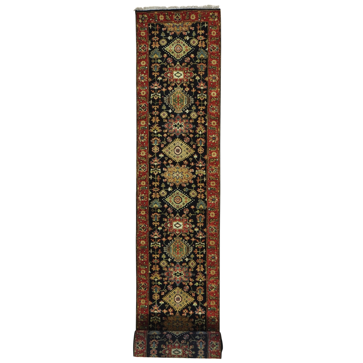 Xl runner hand-knotted black pure wool karajeh oriental rug