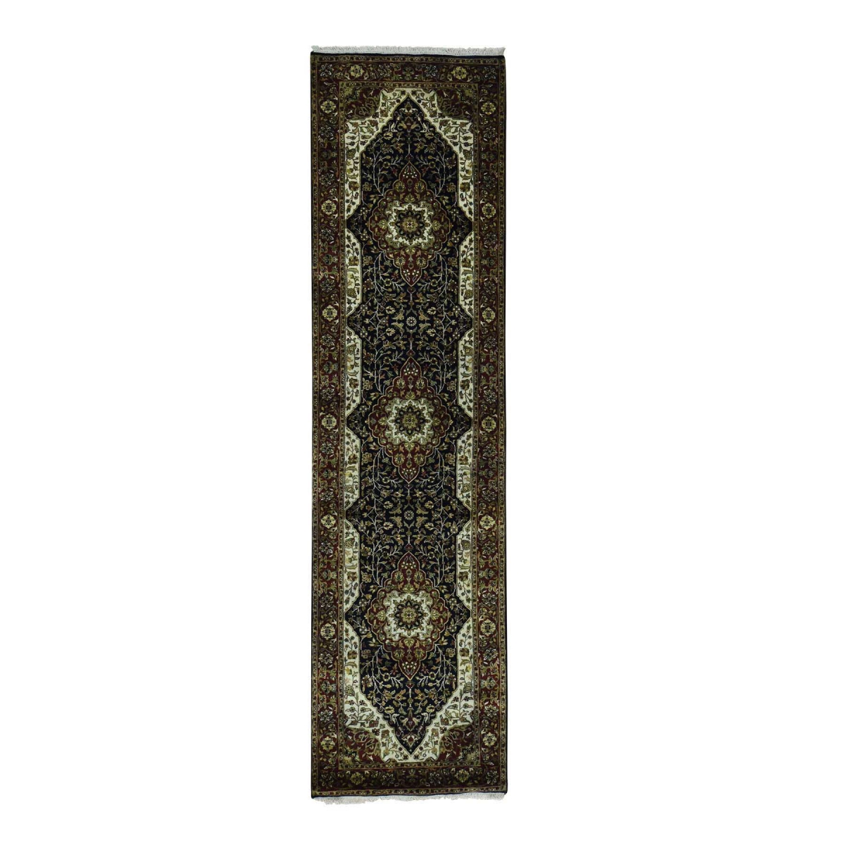 1800 Get A Rug sh33529 2 ft. 8 in. x 10 ft. Handmade Fine Kashan 300 KPSI New Zealand Wool Runner Rug Black