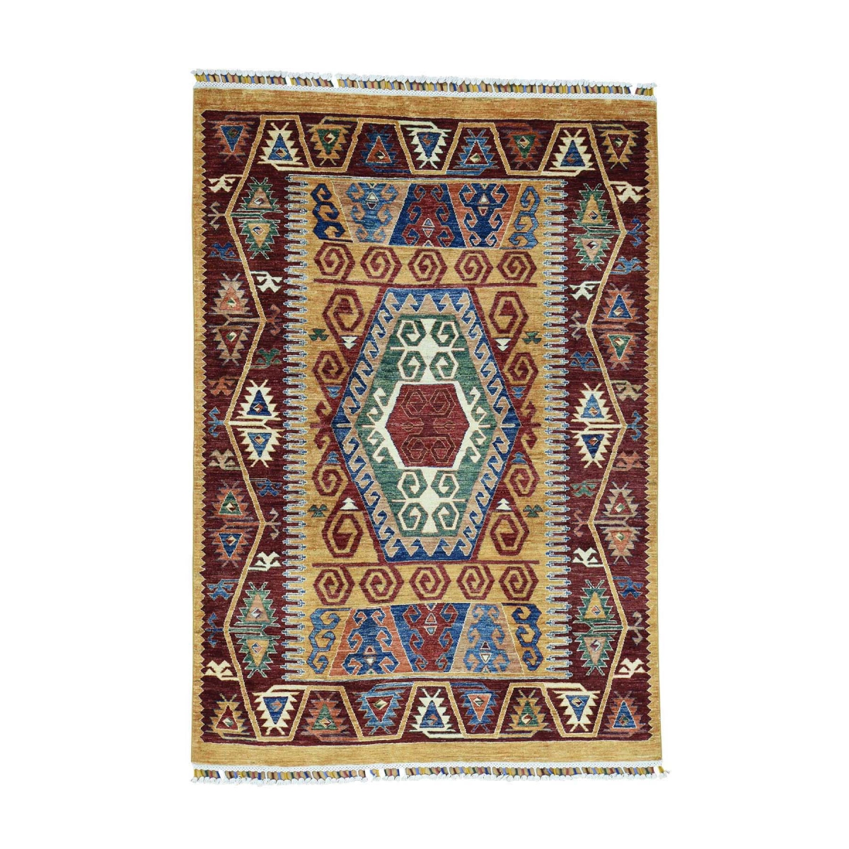 1800 Get A Rug sh33539 5 ft. 7 in. x 8 ft. Hand Knotted Super Kazak Khorjin Design Oriental Rug Gold