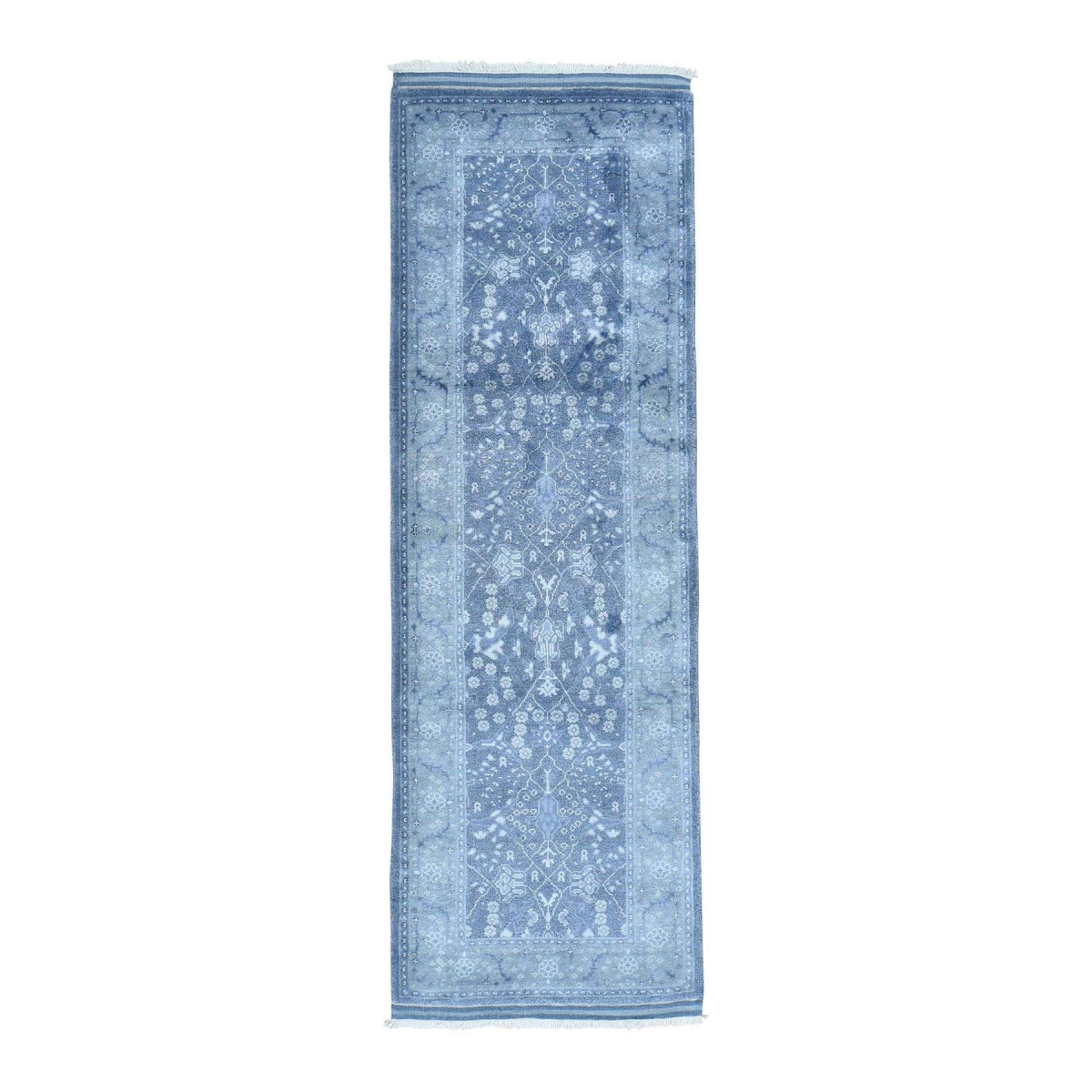 1800 Get A Rug sh33564 2 ft. 9 in. x 8 ft. 2 in. Silver Oushak Wool and Silk Hand Knotted Runner Rug Blue