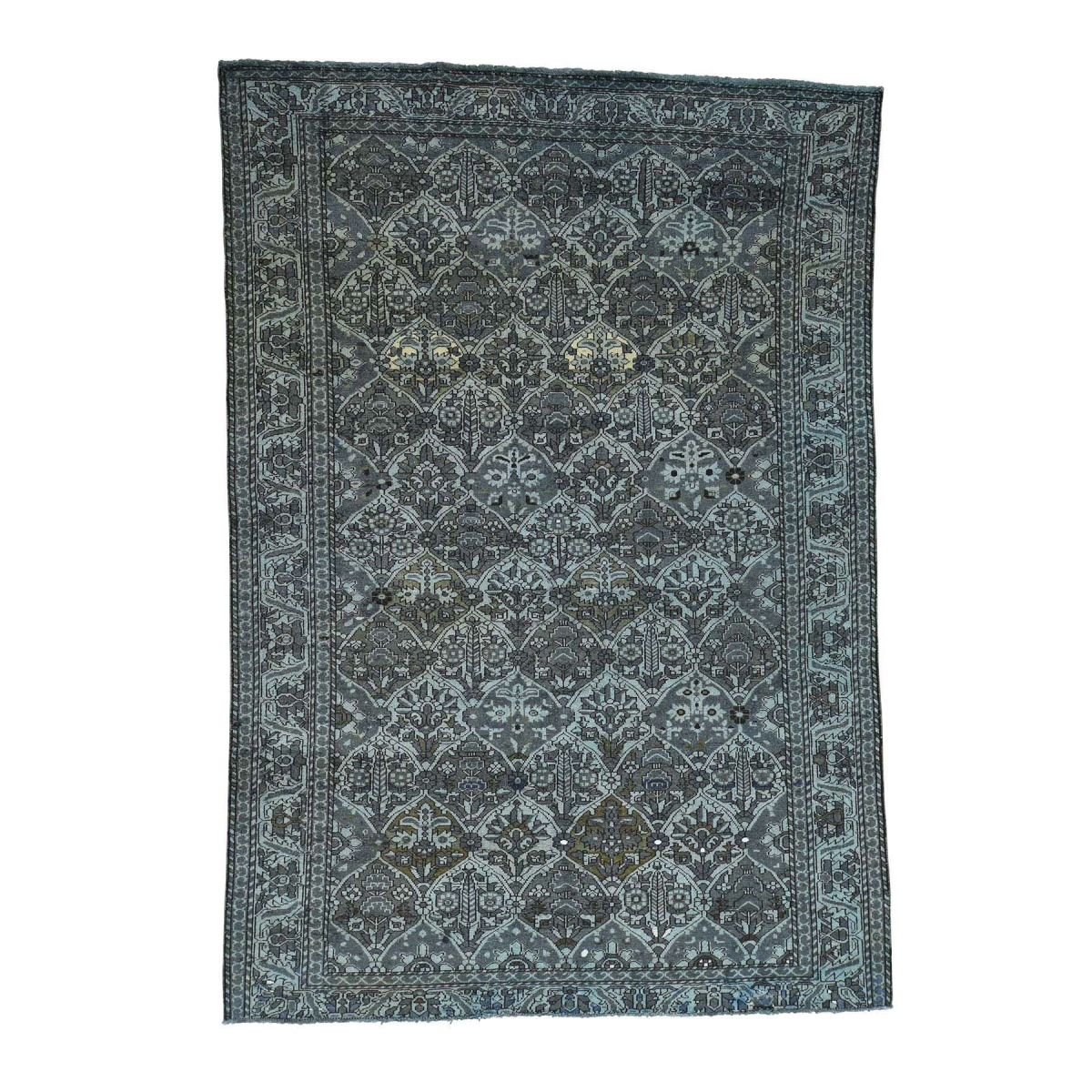 1800 Get A Rug sh33612 7 ft. x 9 ft. 9 in. Pure Wool Hand Knotted Persian Bakhtiari Grey Overdyed Worn Rug Grey