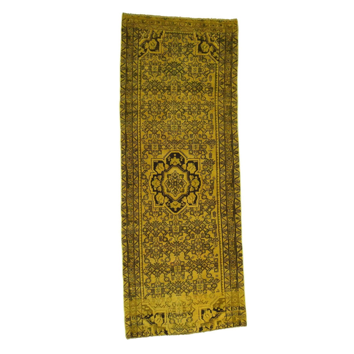 1800 Get A Rug sh33630 3 ft. 10 in. x 10 ft. Handmade Overdyed Hamadan Worn Oriental Wide Runner Rug Gold