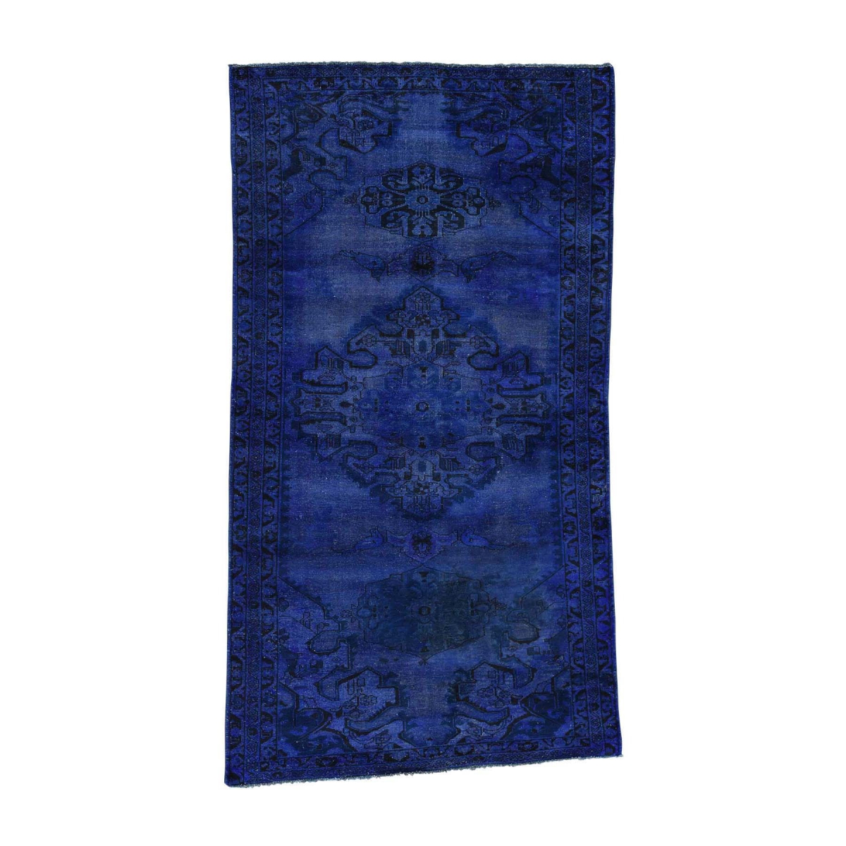 1800 Get A Rug sh33639 5 ft. 2 in. x 9 ft. 2 in. Handmade Overdyed Hamadan Worn Pure Wool Wide Runner Rug Blue