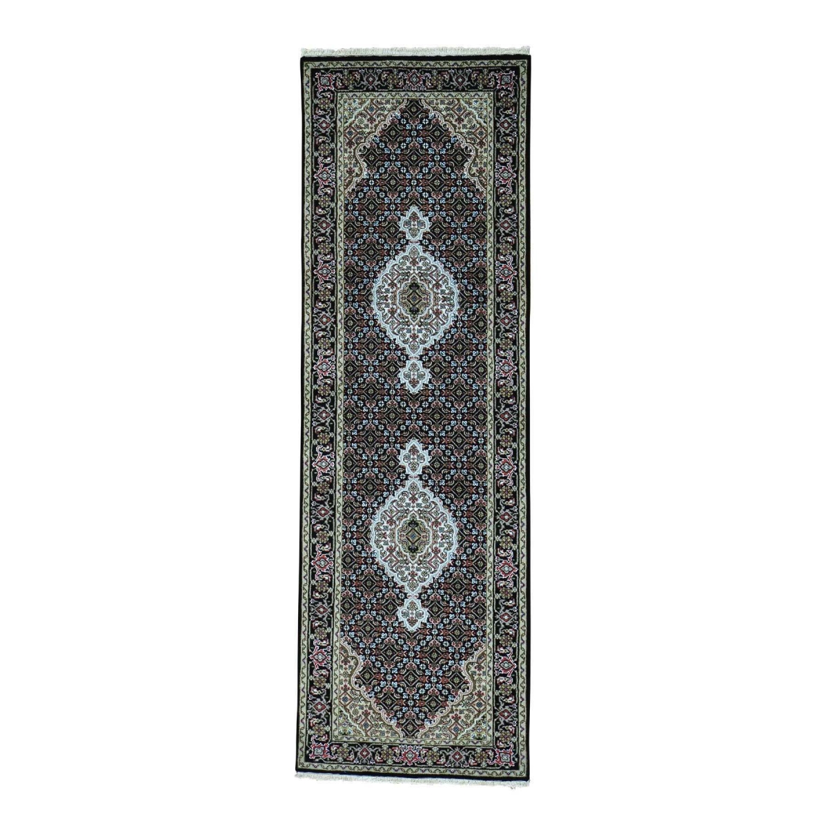 Wool and silk hand-knotted 250 kpsi tabriz mahi runner rug